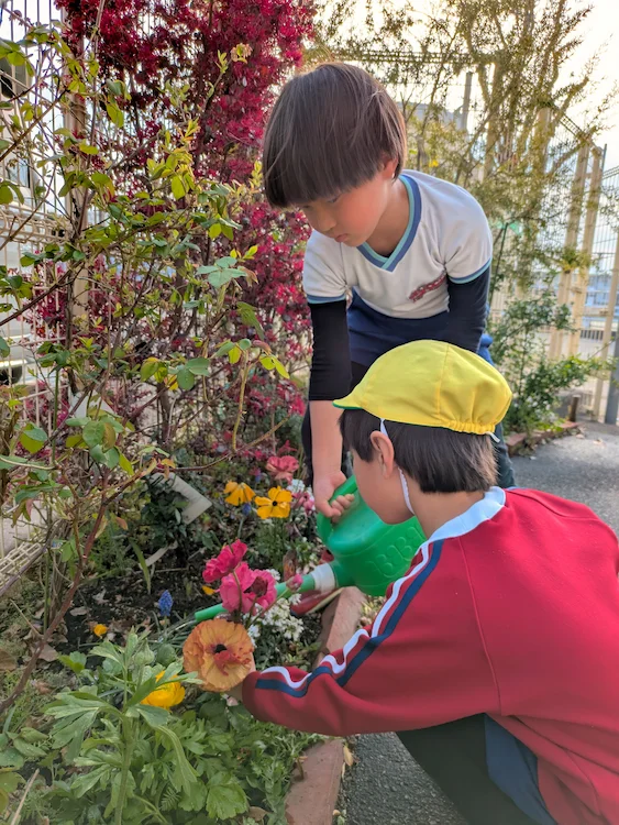 園庭中に子どもたちの元気な声が響いています。