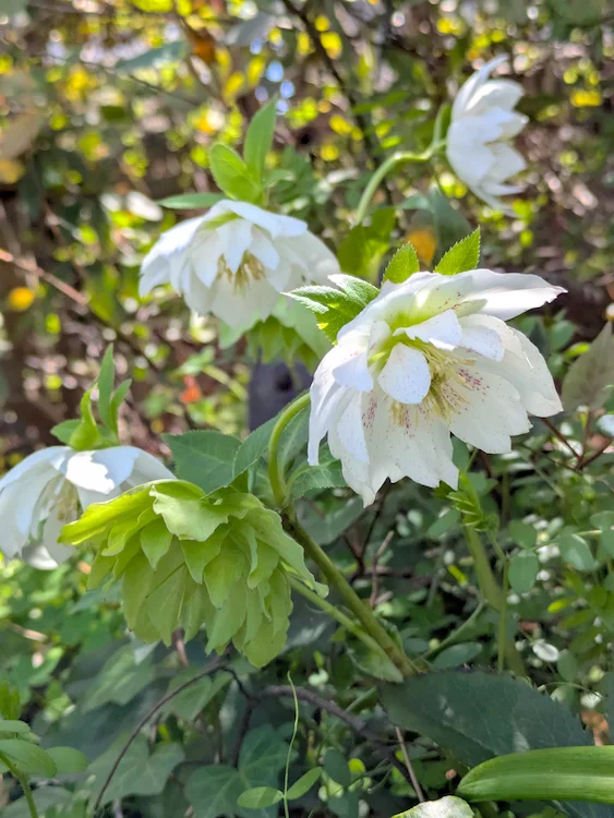 果樹園に珍しいお花が咲いています。
