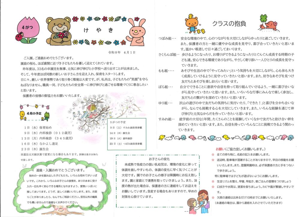 園だより「けやき」 2026年度